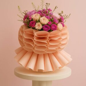 Heart-shaped hand bouquet with the phrase “I love you, mom.”